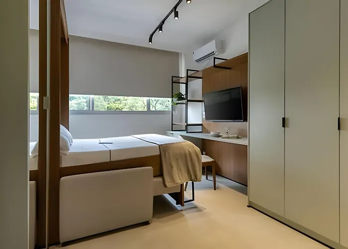 Com piscina, o Studio Luggo Pampulha Belo Horizonte está situado a 25 minutos a pé da Mineirão.